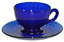 Fenton Royal Blue / Cobalt Diamond Optic #1502 Cup and Saucer
