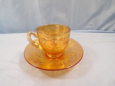 Fenton Marigold Carnival Glass Kittens Small Cup & Saucer Set READ
