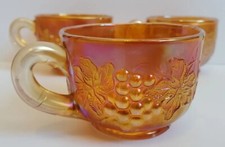 Vintage Fenton Carnival Glass Teacups Iridescent Orange Grapevine Set Of 3