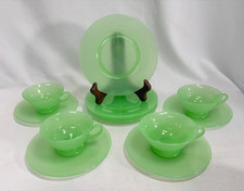 RARE 12 Piece FENTON GLASS Lunch Set Jadite Coffee Cups, Saucers, Lunch Plates