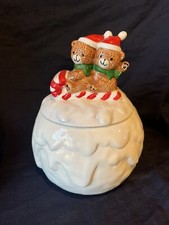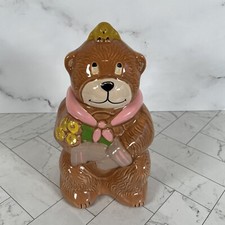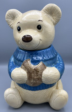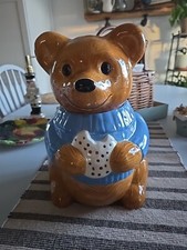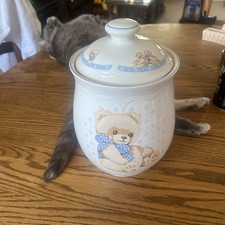 Tienshan Stoneware Country Teddy Bear Canister Cookie Jar 9” Cottage Vintage