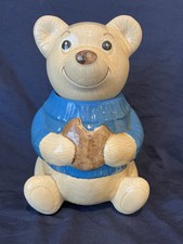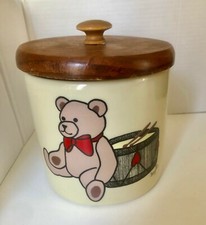 Vintage Tienshan Stoneware Teddy Bear Jar Canister w/Lid (7.5") EUC