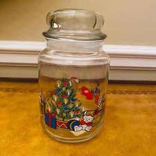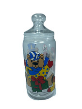 Vintage Holiday Christmas Glass Lidded Candy Jar Teddy Bear Wagon Rocking Horse