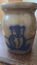 BBP Beaumont Bros Pottery Blue Teddy Bear Crock Vase Jar Salt Glaze 1997 Vintage