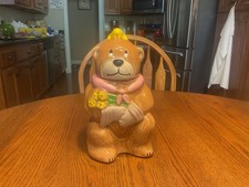 Tienshan Stoneware Country Teddy Bear Canister Cookie Jar 9" Cottage Vintage