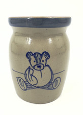 Vintage R.R.P. Co. Stoneware 1 Qt. High Jar Crock Teddy Bear Decor