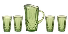 Child's Toy 5 Pc Glass Water Pitcher Set ca:1950's