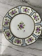 08 Vtg Nippon Porcelain Plate-9.75"-Purple Flowers w/ Moriage-Hand Painted-EUC