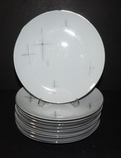 MCM Royal M Yamaka Echo Sunburst Atomic Dinner Plates Lot of 11 Platinum Trim
