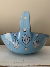 Vintage DERUTA Sign Italian Pottery GOLD TIP Blue Basket Italy Florentine ❤️tb5m