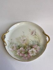 Antique GDA Limoges France Hand Painted 2 Handled Cake Plate Gold Trim 10 3/8”D