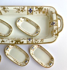 Antique Asian Porcelain Gold Moriage Appetizer Dessert Tray Plate Set Japan 1911