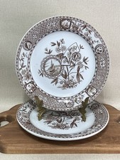 Antique 1885 Thomas Hughes Burslem Sitka Brown Aesthetic 10 In Plate Set Of 2