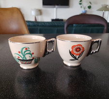 2 RARE ANTIQUE LEIGH POTTERS ENGLAND ART DECO DEMITASSE COFFEE CUPS MAYFAIR