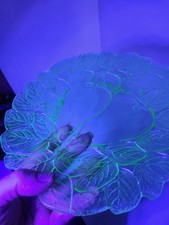 2 Antique Avocado / Sweet Pear, Uranium Glass Dessert Plates