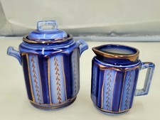 Childs Flow Blue Wheel Sugar Bowl & Creamer Toy Tea Set Antique 1890