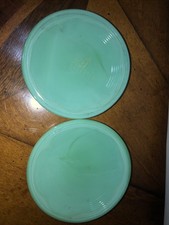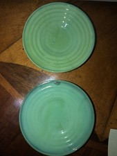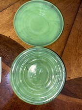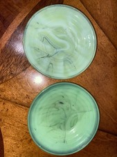 Akro Agate Toy Tea 2 Dishes Green Plates Saucer Mini Plate 4”