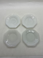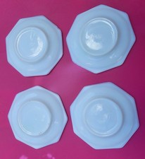 Octagonal White Akro Agate Child's Toy plate Slag Glass 3-1/2" w (4) Vintage