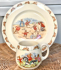 Vintage 1950s Royal Doulton Bunnykins at Seashore & Toy Horses Plate Cup Signed