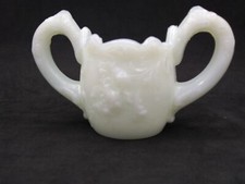 Vtg. Milk Glass Wild Rose Children's Toy Spooner Sugar Bowl 4.5" Across