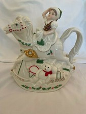 Vintage LENOX Teapot - Christmas Elf & Rocking Horse - Santa's Holiday Toy Shop