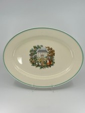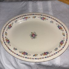 M17 Rare Mid- Century Large Ivory Homer Laugjlin Rhythm Oval Platter P/bl/gr
