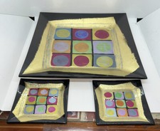 M C M 12.5” Square Platter And Two Saucers Abstract Gold Highlights