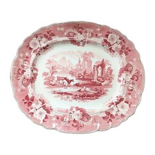 Antique 1830s Red Transferware Platter 15 5/8"X 13 1/4" ~ Abbey Ruins ~ T. Mayer