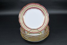 6 Antique GDA Limoges France 5" Bread Plate or Berry Bowl Burgundy Red Gold Gilt