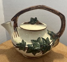 McCoy 1940's Majolica Ivy Design Teapot w/ Lid Ivy Wood Tree Branch Handle Look