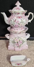 Antique Vintage R S Porcelain Pink Roses Teapot Tea Warmer Set 4 Pieces MINTY 👀