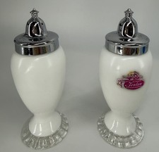 Vintage Fenton Silver Crest Milk Glass Salt & Pepper Shaker Set USA , Crystal