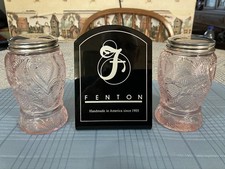 Fenton HTF Pink Inverted Strawberry Pattern Salt & Pepper Set