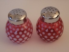 Vintage Fenton Cranberry Polka Dot Salt Pepper Shakers