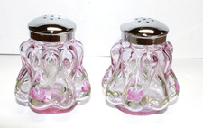 Vintage Pair of Fenton Glass Salt & Pepper Shakers-Clear w/Roses by Wendy Wiblin