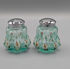 Fenton Teardrop Salt & Pepper Shaker Sea mist green Signed Painted Flowers