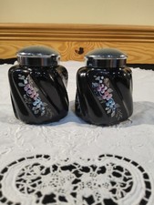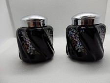 Fenton Glass Salt & Pepper Set Black Hand Painted Signed New QVC C16391