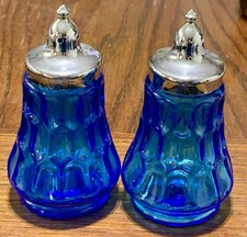 Vintage Fenton Art Glass Colonial Blue Thumbprint Salt & Pepper Shakers