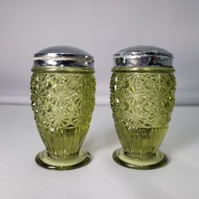Fenton Green Daisy & Button Glass Salt and Pepper Shakers