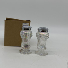 Fenton Salt And Pepper Shakers Carnival Glass Black White Rare