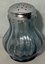 Fenton Ribbed Translucent Light Blue Sugar Muffineer W/STICKER Stainless Shaker