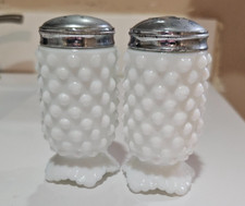 Vintage Fenton Glass White Hobnail Milk Glass Salt and Pepper Shakers 3806-MI