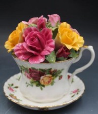 Vintage Royal Albert Old Country Roses Porcelain Musical Tea Cup Music Box