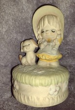 VINTAGE UCTCI POPPET TRIXIE BUNNY & GIRL MUSIC BOX CERAMIC FIGURINE JAPAN 1960’s