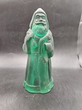 Vintage Fenton Santa Claus Green Carnival Glass with Christmas List & Toy Bag
