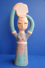 Vtg Clay Pottery Toy Folk Art 11" Statue Russian Traditional W/tag on base