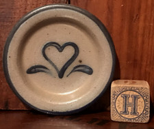 Vintage Primitive Rowe Pottey 1991 Miniature Heart Plate & Old Toy Block AAFA