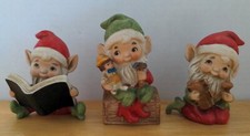 VTG Lot Of 3 Homco 5406 Santas Christmas Elves Porcelain Figurines Toy Makers