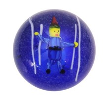 Handblown Art Glass Figural Man Paperweight Cobalt Scarecrow Skiing Puppet Vtg