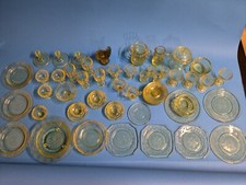 Vintage Akro Agate Stacked Disc Transparent Amber, Complete 17 pc Toy Tea Set